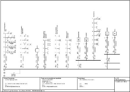 2. U kan het ééndraadschema en het situatieschema ook door ons op professionele wijze laten opmaken. De elektriciteitsschema's moeten opgemaakt worden voor de keuring uitgevoerd wordt, dus twee plaatsbezoeken zijn noodzakelijk. Tijdens het eerste plaatsbezoek wordt er ook een aanduiding van de kringen in de kast aangebracht, indien deze nog niet aanwezig is.